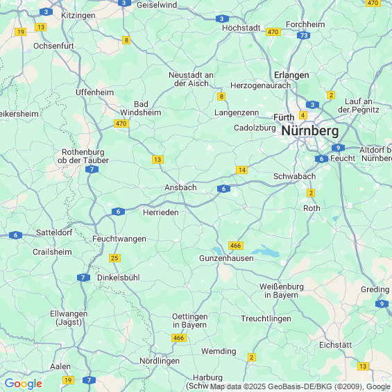 Städte in der Nähe von Ansbach
