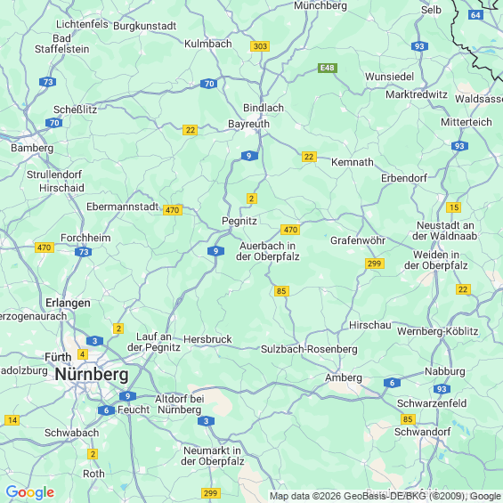 Städte in der Nähe von Auerbach in der Oberpfalz