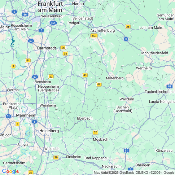 Städte in der Nähe von Erbach Odenwaldkreis