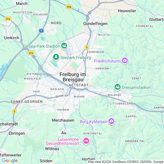 Städte in der Nähe von Freiburg im Breisgau