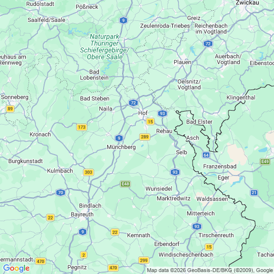 Städte in der Nähe von Schönwald Wunsiedel im Fichtelgebirge