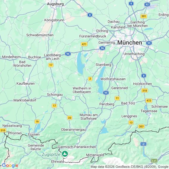 Städte in der Nähe von Weilheim in Oberbayern